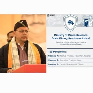 खनन मंत्रालय, भारत सरकार द्वारा गुरुवार को जारी राज्य खनन तत्परता सूचकांक (State Mining Readiness Index – SMRI) में उत्तराखंड ने ‘सी’ कैटेगरी में अग्रणी स्थान प्राप्त किया है। यह उपलब्धि राज्य सरकार के खनन क्षेत्र में पारदर्शिता, दक्षता, सतत विकास और तकनीकी उन्नयन के प्रति किए जा रहे सतत प्रयासों का परिणाम है।