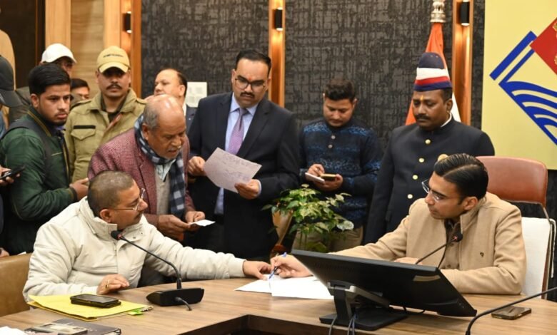 बोक्सा आदिम जनजाति आदर्श हाई स्कूल की बाउंड्री एवं भूमि राजस्व रिकार्ड में दर्ज न होने की शिकायत पर शिक्षा अधिकारी को शीघ्र कार्रवाई के निर्देश दिए गए। चकराता के खरोडा सैंज कुनैन मोटर मार्ग करवाए गए कार्यो का भुगतान न मिलने पर एसडीएम को मामले का निस्तारण करवाने को कहा। आराघर वार्ड नंबर-20 में निमार्णाधीन सीवर लाइन में घर का कनेक्शन न जोड़े जाने की शिकायत पर नगर निगम को इसकी जांच कर शिकायत का निस्तारण करने के निर्देश दिए गए।