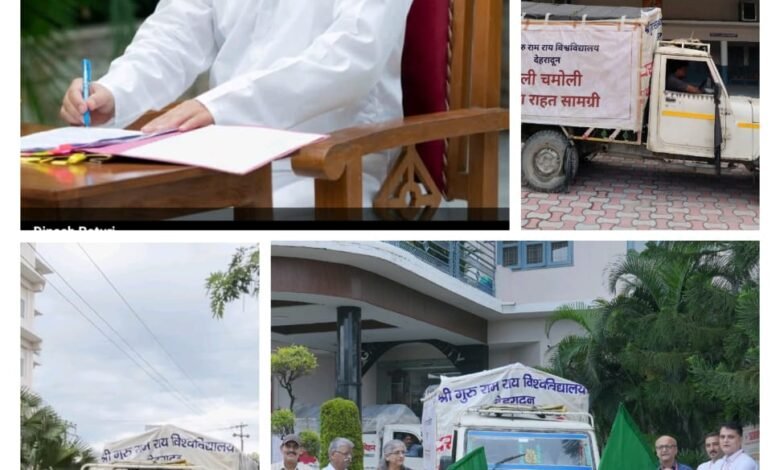 श्री गुरु राम राय विश्वविद्यालय ने थराली चमोलीआपदा पीडितों के लिए भेजी राहत सामग्री
