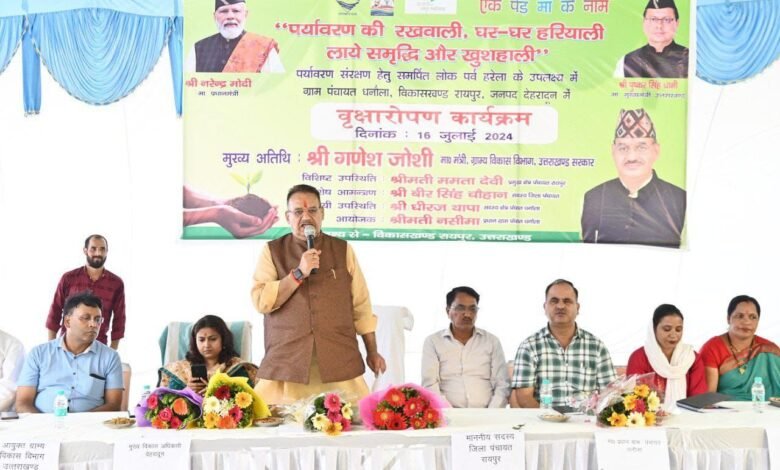 मंत्री गणेश जोशी ने कहा वृक्ष लगाने के बाद उसके संवर्धन की जिमेदारी महत्वपूर्ण होती है